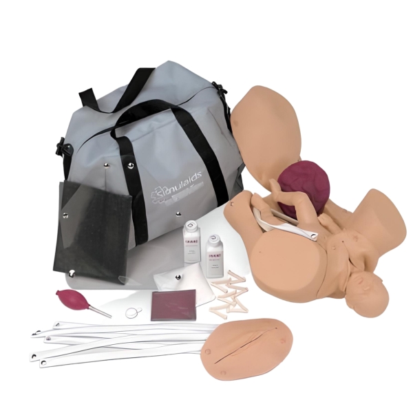 Este maniquí obstétrico es un simulador de parto realista que incluye un modelo pélvico anatómicamente correcto con recién nacido y placenta permitiendo a sus participantes practicar el parto vaginal normal, así como procedimientos para el parto de emergencia.